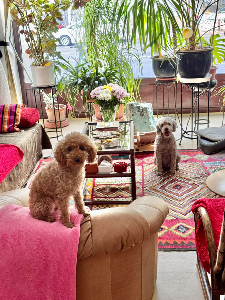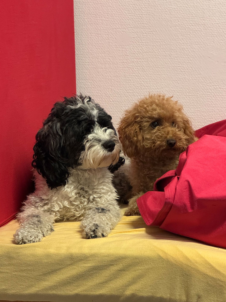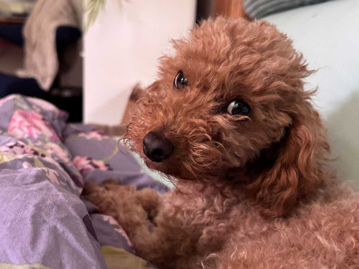 Mellin ist ein Toypudel, sie liebt es ruhig, ist freundlich und ein bisschen ängstlich, sitzt gerne irgendwo oben, auf Kissen, Schoß oder Sessellehne und flüchtet wenn es zu viel, zu laut, zu bunt wird ins Körbchen. Sie ist geräuschempfindlich, wenn sie was hört gibt sie Bescheid, hat Hundeangst, wenn die anderen Hunde zu wild sind und ist geschmacksempfindlich. Ansonsten ist sie gerne immer dabei, sie kann „Erdmännchen machen“, auf Hinterbeinen balancieren und vorsichtig Leckerchen nehmen und sie lernt gerne neue Tricks dazu.